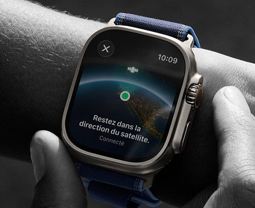 Quand le réseau cellulaire ou le Wi-Fi est indisponible, l'Apple Watch Ultra 3 assure la communication grâce à la connectivité satellite intégrée. En cas d'urgence, vous pouvez contacter les secours directement depuis votre poignet via SOS d'urgence par satellite. En quelques gestes, la montre transmet les informations essentielles, se connecte à un satellite et alerte les services compétents.